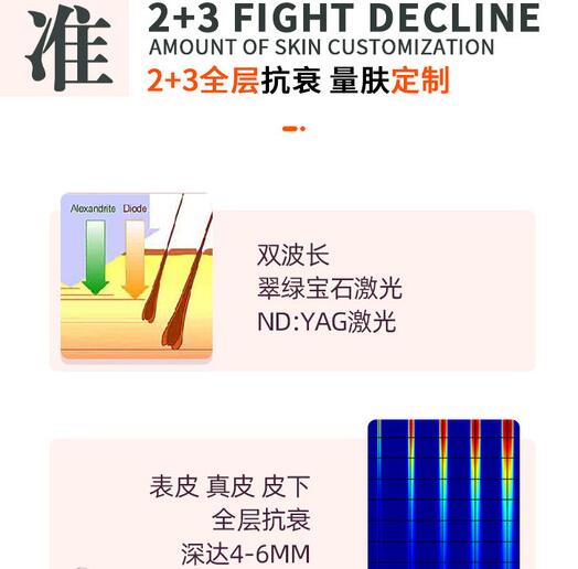 ●2個(gè)作用光波長(zhǎng)+三個(gè)緩解層級(jí):755nm+1064nm/表皮,貨源優(yōu)質(zhì)層,皮下組織層