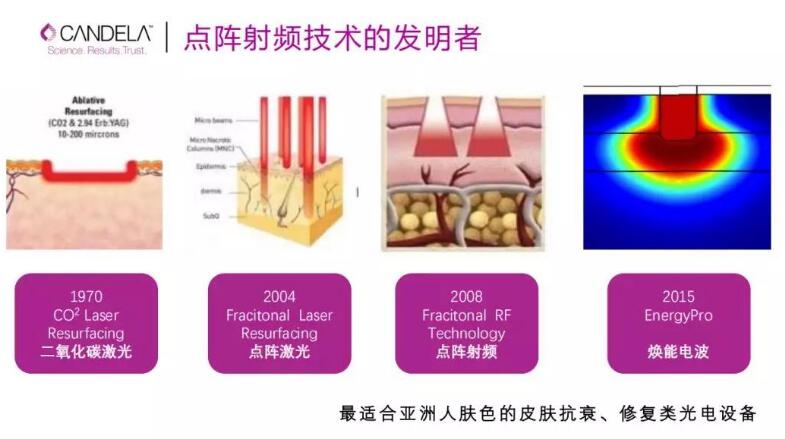 EnergyPro選用以色列Candela企業(yè)專*權——水滴電波技術。運用矩陣電涌頭一下子造成的高頻電波,無損傷透過表皮,到達皮下組織,喚起肌膚基礎代謝能力,提升膠原蛋白鏈的修復,及其成纖維母細胞的再造。進而擴大表皮支撐力,降低皺褶,收斂毛孔,消除黑色素等變老難題。并在一定時間段內維持肌膚魅力,加強再造,修復的實際果。