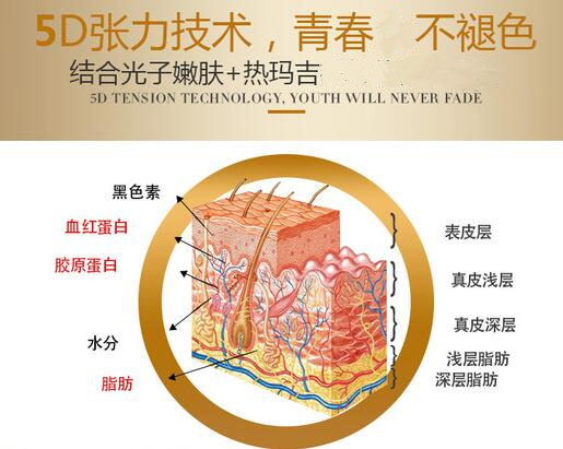 作用范圍:賽諾秀5d膠原光因其激光的層次性有所不同,所以是根據(jù)5個(gè)層次可以進(jìn)行分層的抗衰,但是熱瑪吉主要是集中在真皮層。