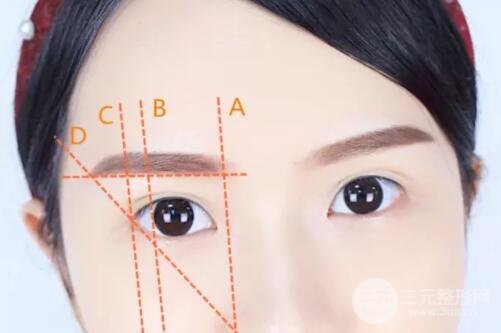 (3) 眉尾(眉梢):與鼻翼外眼角處成四十五度角,與眉頭高低基本呈水平或高于眉頭。