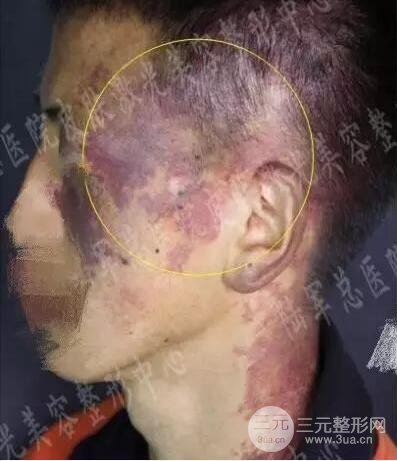 我出生左側(cè)頭、面、頸、胸、背、臂部就有大面積鮮紅斑痣
