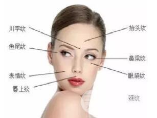 比如說眉間紋、抬頭紋、魚尾紋和頸紋、法令紋等