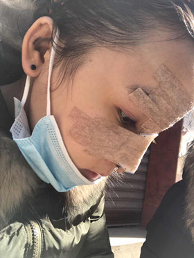 今天消腫了很多,但是眼睛周邊還是青的發(fā)黃的那種!