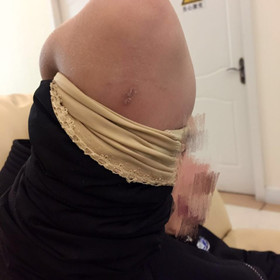 手臂先做的疤痕快長好了,背部后做的去上次去醫(yī)院復(fù)查拍的照片,很細的一根線,長好應(yīng)該就沒有印子了。現(xiàn)在傷口和大腫都消下去了,就是動作大的時候會有一點點痛,還在恢復(fù)中,較近都不能運動了!