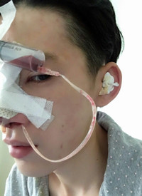 手術(shù)后的我變成了這個(gè)樣子,還是有一點(diǎn)點(diǎn)腫!醫(yī)生建議我不要做什么大型運(yùn)動(dòng),要特別當(dāng)心我的鼻子!