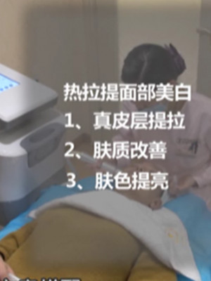 現(xiàn)在就是做電波l皮緊膚緩解了,能夠進(jìn)一步收緊皮膚,祛除皺紋,還能提亮我的膚色哦……