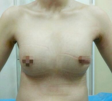 三個月了,恢復得很好了,軟了不少,手感也很好,不過好像比剛做小了點,現(xiàn)在的胸就B罩杯的樣子吧。