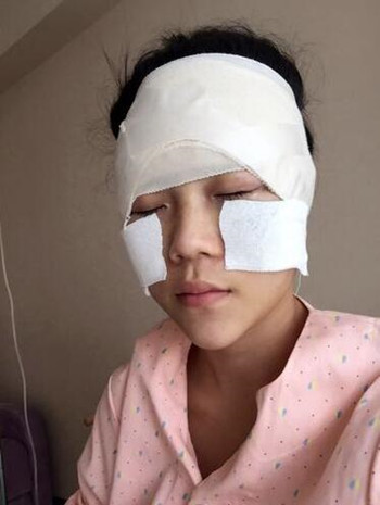 手術(shù)當(dāng)天,氣的特別早,然后就開始準(zhǔn)備手術(shù),我是全麻的,做手術(shù)期間我是什么也不知道,等我醒來的時候,已經(jīng)做好了填充,額頭和臉頰都已經(jīng)用紗布包裹好了!果現(xiàn)在是看不出來的,但是臉頰和額頭有點漲,醫(yī)生說這是正常的,那好吧,現(xiàn)在就等做雙眼皮手術(shù)了!