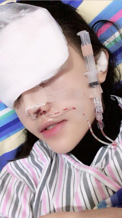 手術(shù)后的第二天 ,今天鼻子看起來(lái)比第(一)天腫了一些,但還是沒(méi)有多腫,在醫(yī)院吊了抗生素,下午就可以取管子回家啦。