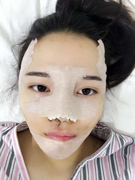 剛剛到家,鼻子里塞的東西取掉了終于可以用鼻子呼吸了,讓醫(yī)生把下巴的膠帶也拆了,不拆的話(huà)嘴巴都張不怎么開(kāi)吃東西也難吃進(jìn)去。下巴很硬,感覺(jué)下巴挺長(zhǎng)挺尖的,希望后期吸收自然一點(diǎn)。明天還要去打消炎針,身上沒(méi)有不舒服也沒(méi)有痛的地方感覺(jué)還好嘻嘻