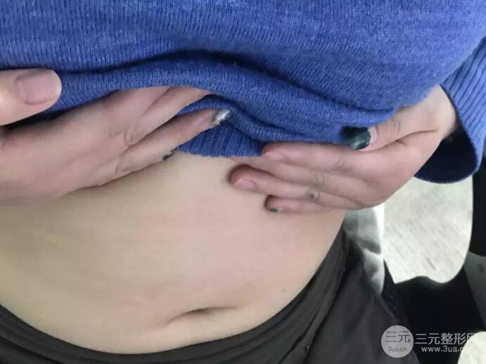 我腹部的贅肉一直都比較多,其實我的體型也不算胖,我一米六,體重九十斤,別的地方都還好,腿上和臉都沒什么肉,但就是腰部贅肉特多,游泳圈都有好幾圈了,給大家看看我術(shù)前坐著拍的照片