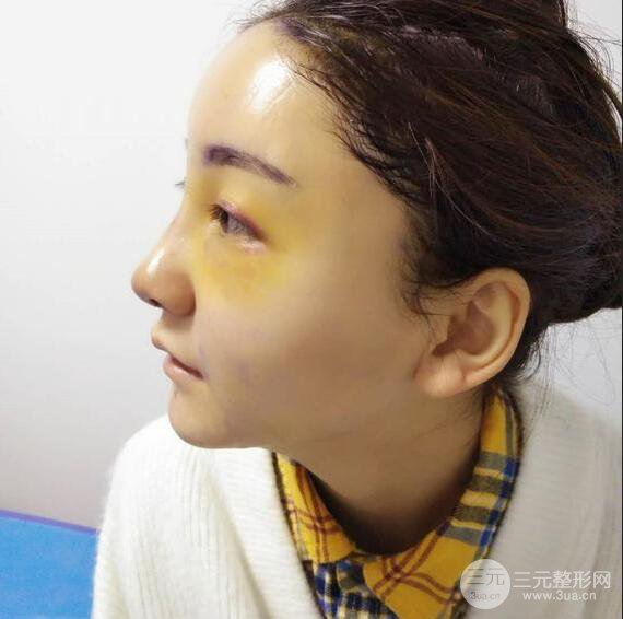 看起來是不是很腫,特別飽滿,像是失敗了?其實沒有,我很想要心形臉,現(xiàn)在看著是不是有點那個感覺了?其實這個主要是腫脹的原因