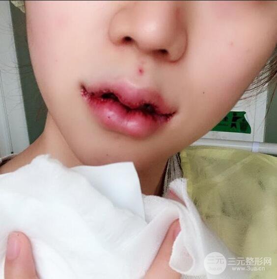 做完手術后在出血有點痛但是可以忍,下來吃了藥一直在冰敷,先看嘴巴吧,是不是很嚇人啊